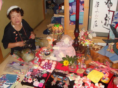 店に足を踏み入れると、そこにはおばあちゃんの世界が広がります。玄関の上がり台に、丹精こめて作った小物を並べています。玄関を店舗に利用する知恵、経費をかけない店舗の知恵に感心しました。